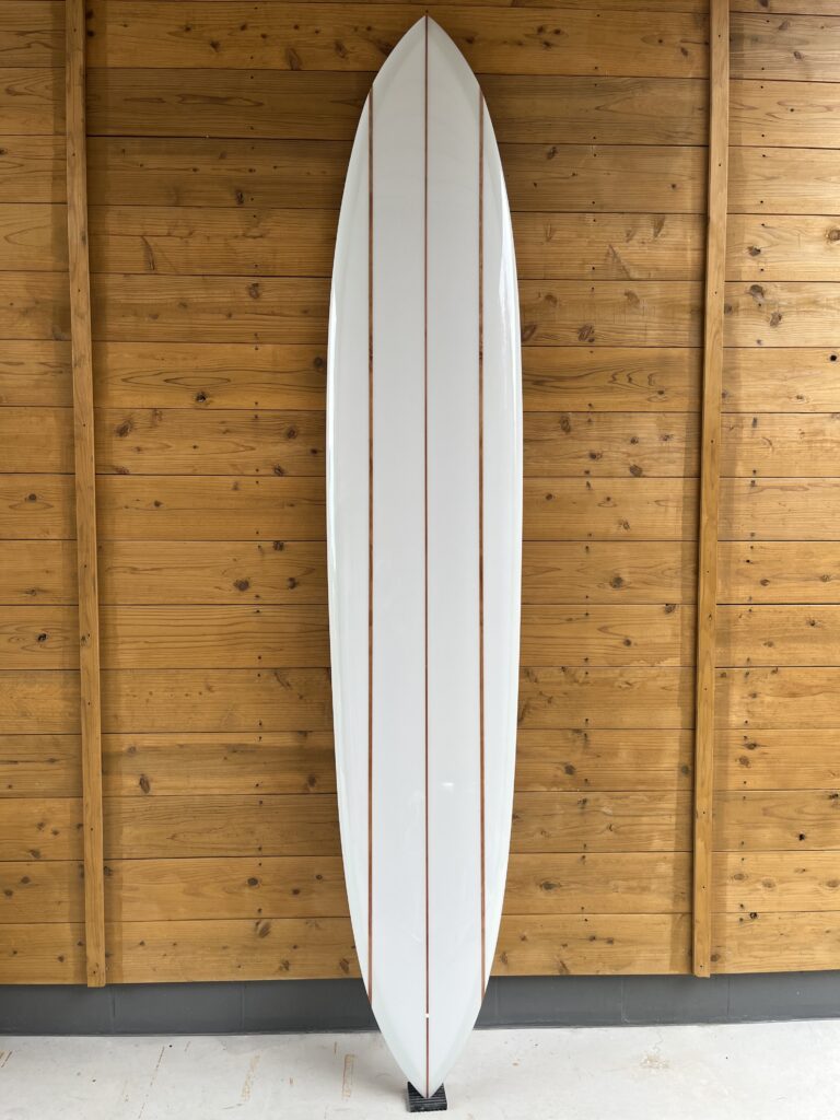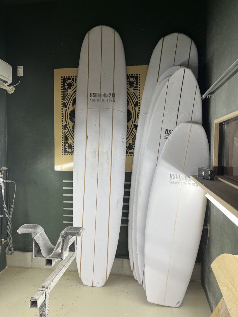 気持ちを引き締める為に最初に選んだのは10フィート、レッドウッド、トリプルストリンガー。この一本から、今年の僕のシェイプが始まります。