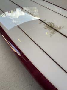 僕たちが最も自信を持っているのが、この鏡面(ポリッシュ)仕上げです。この輝きに辿り着くための「黄金比」を見つけ出すには、膨大な時間を要しました。誤魔化しが一切きかない鏡面仕上げは、シェイプから始まる下地のわずかな歪みさえも露呈させます。だからこそ、その圧倒的な平滑さと輝きは、僕たちの妥協なき仕事の証です。
